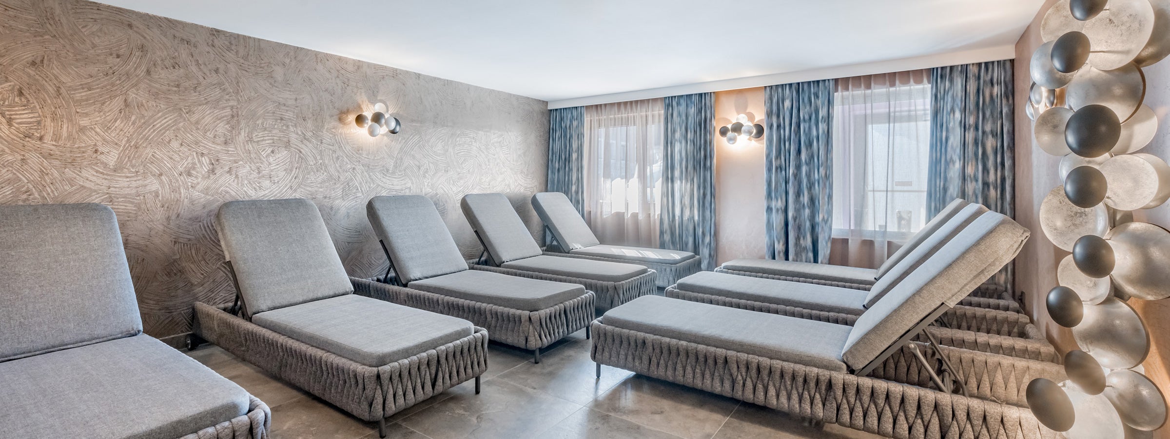 Die hochwertigen Polsterungen laden zum Entspannen ein, während die klaren Linien und die moderne Farbgestaltung harmonisch mit der edlen Spa-Architektur des Hotels verschmelzen.
